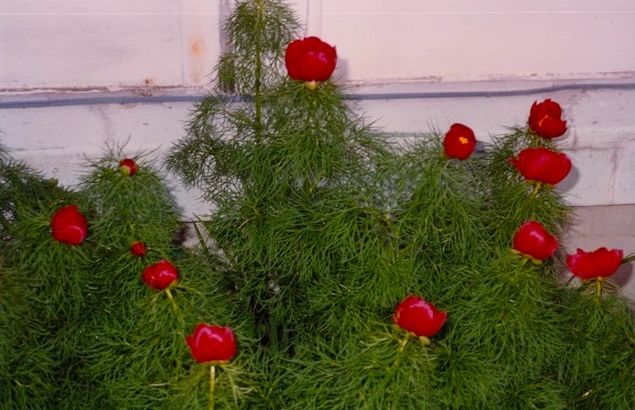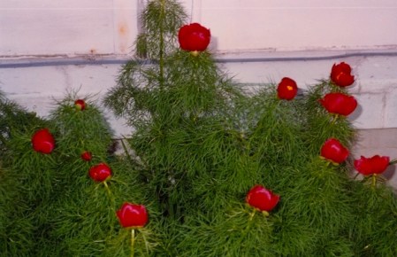 All three were illustrated in my earlier posting, but now we get Jacques‘s photos, which have a value beyond mere visual information. The fern-leaved peonies, from May 1994 (during their short but fabulous bloom time):