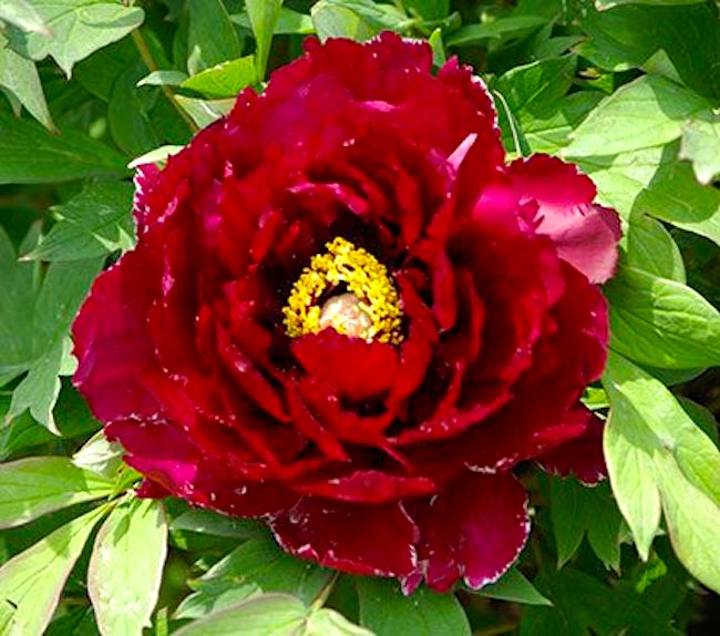 The plants came from White Flower Farm in Connecticut, and they were expensive, but they arrived in beautiful shape and flourished. You can look at the company’s current tree peony offerings here; they include this Paeonia suffruticosa Shikounishiki (now $80):