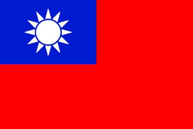 The flag of the Republic of China is red with a navy blue canton bearing a white sun with twelve triangular rays. In Chinese, the flag is commonly described as Blue Sky, White Sun, and a Wholly Red Earth to reflect its attributes.