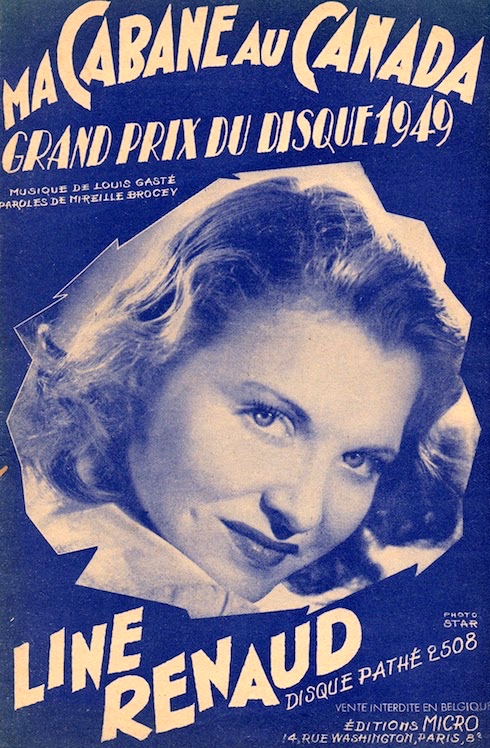 au Canada. The national anthem “O Canada!” took me right to au Canada ‘in Canada’, and then to the song “Ma Cabane au Canada” (“My Cabin in Canada”), first recorded (in France) by Line Renaud in 1947. An image of a cabin in Canada: