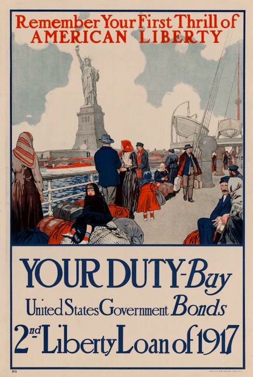 A number of posters were directed at foreign-born Americans; this one was aimed at any immigrants who came in through Ellis Island. Such posters were not, of course, designed for German Americans. Or for Irish Americans; 1916 saw the Easter Rising in Ireland, a rebellion against British rule, and the Irish were generally antagonistic towards Britain, so Irish Americans were viewed as potentially opposed to the war effort.