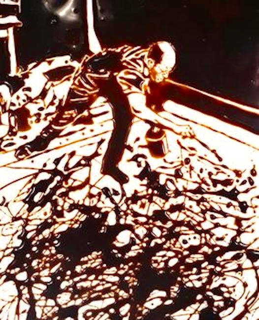 (#2) Muniz’s Action Photo, After Hans Namuth (From Pictures of Chocolate), a Cibachrome print, is a Bosco Chocolate Syrup recreation of one of Hans Namuth’s photographs of Jackson Pollock in his studio