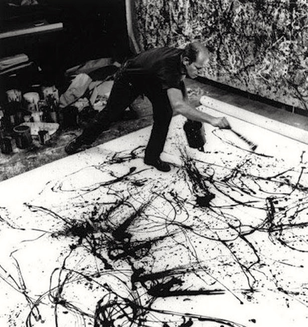 (#3) Jackson Pollock in the act of painting (1950), photographed by Hans Namuth.