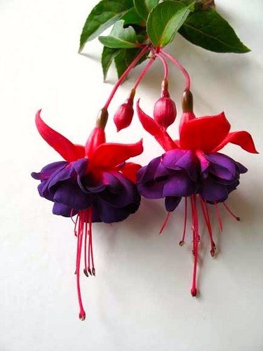 The genus Fuchsia is far from uniform: it takes in about 110 species, mostly of shrubs or small trees (typically no more than 2 pr 3 ft high). The horticultural plants (like the one below) are hybrids of several species.