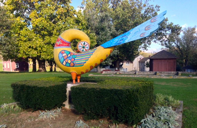 The Berks Distelfink. You will see on the map in #5 the legend Der Distelfink Statue. This is an 11-foot folk-artsy statue of a distelfink (lit. ‘thistle-finch’, known in English as the goldfinch):