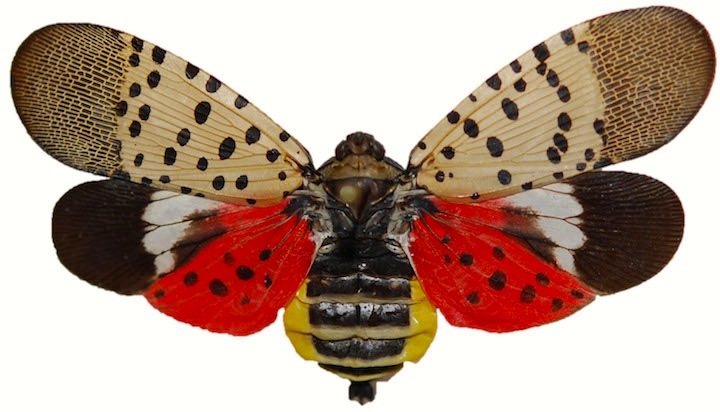 From the annals of noxious pests, double-team division, a pairing of the disgusting and destructive insect pest Lycorma deliculata with the rampant invasive plant pest Ailanthus altissima.
