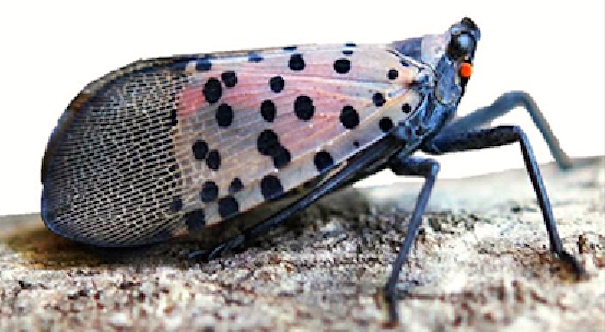 … The spotted lanternfly was first recognized in the US in Berks County, northwest of Philadelphia, Pennsylvania. On 22 September 2014, the Pennsylvania Department of Agriculture, and the Pennsylvania Game Commission, confirmed its presence. It is a threat to the state’s grape, fruit tree and logging industries. The greatest risk of spread comes from people transporting materials containing egg masses laid on smooth bark, stone, and other vertical surfaces. On November 1, 2014 the Pennsylvania Department of Agriculture banned transport of items that could harbor it, like firewood, lawn mowers, outdoor chairs, trucks and RVs from seven municipalities. Given the presence of old egg masses the insect is estimated to have been in the area since at least 2012, having survived the 2013/14 winter’s unusual cold.