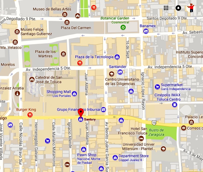 Thanks to the fact that the Santory women’s fashion store figures prominently in the background of the video, it’s easy to identify just where in Toluca the flash mob took place. A map: