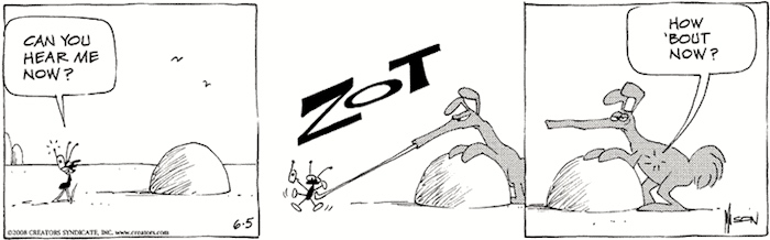 and any anteater comic, given that zot is the characteristic sound made by anteaters in comics (as in B.C.):