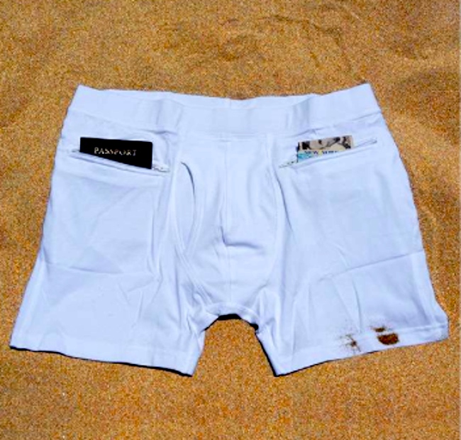 Men’s underwear with two hidden zipper pockets come in a comfortable boxer style. The pockets fit passports perfectly and there is ample space for credit cards, cash, keys, even cell phones and other valuables you just don’t want to lose on your travels. They’re the perfect place to store those valuables you need on you but don’t need to access often throughout the day, like a passport!