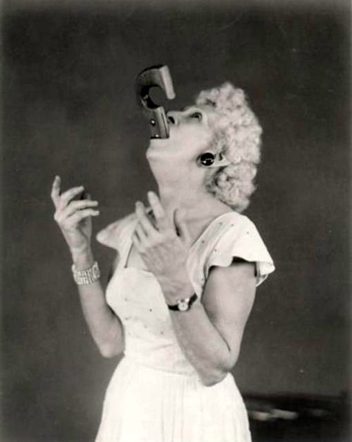 Mimi Garneau was born as Hazel Jude Thomas in 1890 (also reported as 1894) near Phillipsburg, PA. The young woman learned to swallow swords and began performing under the name Jude by the late 1920s. She soon gained acclaim by becoming the first woman to swallow a neon sword. By the early 1930s Jude met her husband-to-be, Fred Garneau. It’s unknown why she eventually adopted the first name Mimi… Garneau spent her final years in Tampa, FL, where she passed away on Feb. 22, 1986.