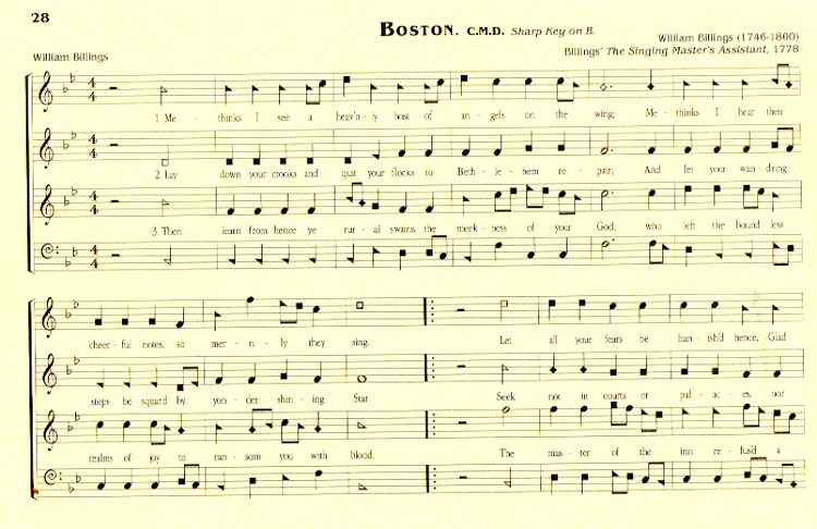 (#10) Boston by William Billings (The Singing Master’s Assistant, 1778); text (by Billings) “Methinks I see an heavenly host”; in ACH #28