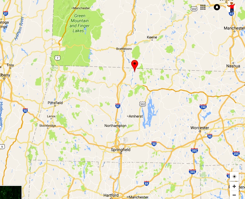 New England in a nutshell. A moderately large-scale map, in which the pointer marks Northfield: