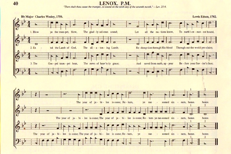 (#7) Lenox 40 by Lewis Edson; text (by Charles Wesley) “Blow ye the trumpet, blow”