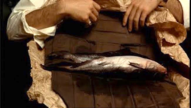This is actually an old Sicilian method. Fish were wrapped up in any article of clothing that was once owned by the murdered victim and then delivered to the Mafia family signifying that their member was dead and now at the bottom of the sea. The fish is a symbol of being killed, slain, massacred, or brutally murdered [by] another Mafia family.