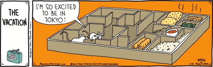 In today’s cartoon feed, a penguin Zits and a maze-rat Rhymes With Orange: