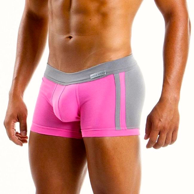 We all know a man who wears pink exudes confidence. Pink is a sexy color choice for all forms of men’s underwear, and it will surely get you noticed if you’re ever caught with your pants down. This alluring color is complementary to all skin tones, too, and signals that a man is self-assured of his masculinity [I’d say sexuality here, since normative masculinity might not what a particular man is aiming for], especially when he is proudly wearing it as underwear. Hot pink underwear works well against men with lighter skin tones, while light pink choices complement those with darker skin tones. Check out our top pink picks of briefs, trunks, jock straps and more and let us know which one works best for you. [#6 and 7 are two of these choices]