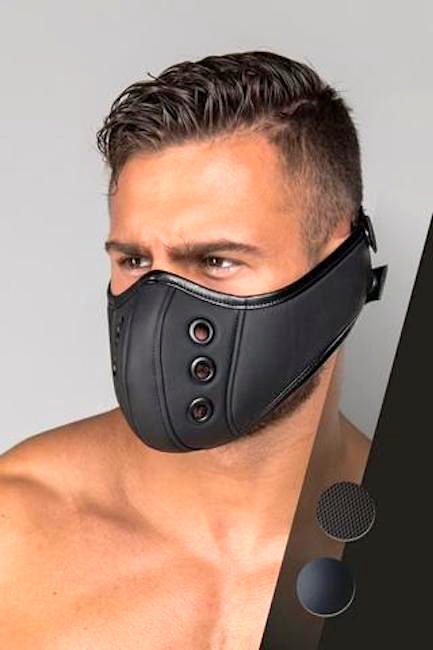 The company name is clearly designed to suggest masculinity and muscularity, and possibly also masks in fetish play, maybe even Spanish más culo ‘more ass’. Maskulo does in fact offer masks / muzzles, notably this item: