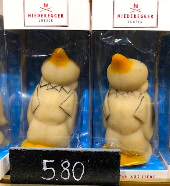 Marzipenguins. From Ned Deily on Facebook, these marzipan penguins from the Niedegger shop in Lübeck, Germany (the marzipan mothership, as Ned put it):