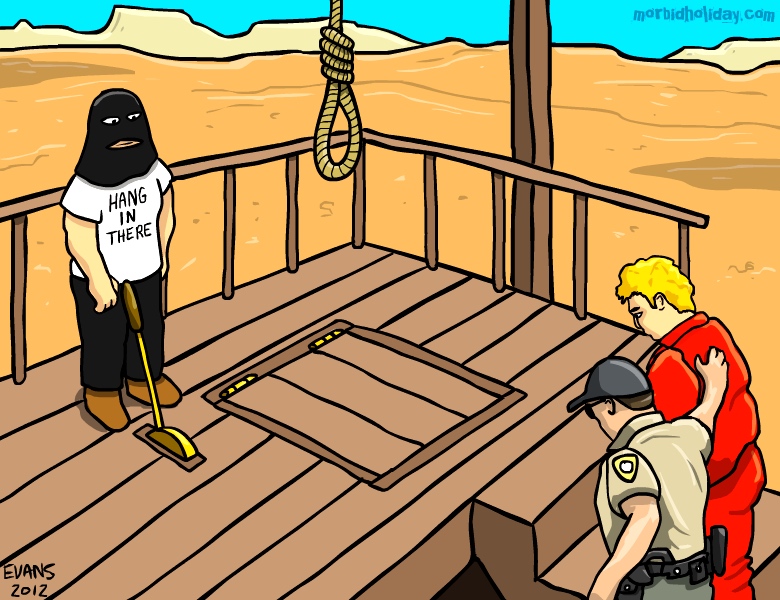Gallows humor is humor about very unpleasant, serious, or painful circumstances. Any humor that treats serious matters, such as death, war, disease, and crime, in a light, silly or satirical fashion is considered gallows humor. Gallows humor has been described as a witticism in response to a hopeless situation. It arises from stressful, traumatic, or life-threatening situations, often in circumstances such that death is perceived as impending and unavoidable.