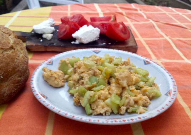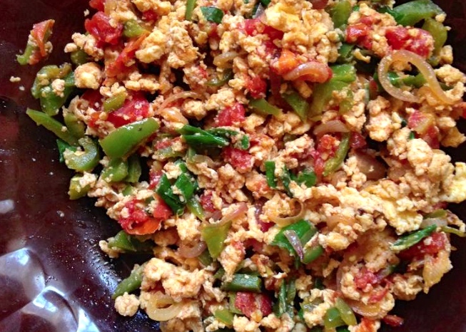 On the epicurious site, a recipe for: “Scrumbled Eggs with Tomato and Cheese – Strapatsada”