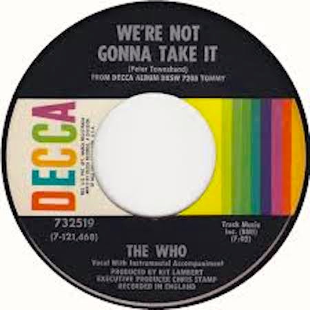 Negated modal versions of this use of take have been enshrined in popular music, in two songs with the title “We’re Not Gonna Take It”. First, The Who in the rock opera Tommy (1969):