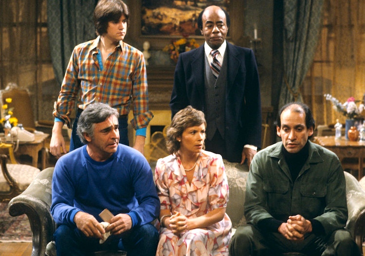 (#2) Donnelly Rhodes, seated left, with other members of the cast of “Soap” in 1981; from left: Jimmy Baio, Jennifer Salt, Roscoe Lee Browne and Gregory Sierra