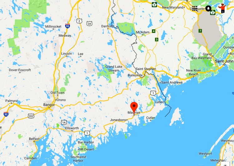 Machias is not far short of New Brunswick; the island just to its east is Grand Manan NB, and further to the east on the map is Nova Scotia.