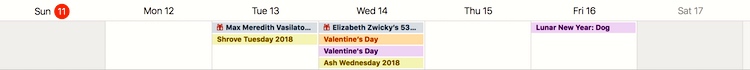 Last week — Sunday the 4th through Saturday the 10th — was a great rarity on my calendar: an entire week without a holiday, anniversary, or other celebratory event. This from someone with lots of family and friends with birthdays, someone who notes linguistic holidays like Hangul Day and OK Day, someone who tracks many saints’ days (Valentine, David, Patrick, Andrew, Nicholas, Cecilia, Arnold, Genevieve, Stephen, George), and someone who notes oddities like Doris Day.