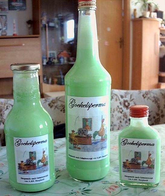 Gockelsperma. A commercial version, with an off-color joke on the label:
