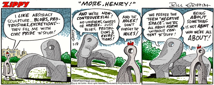 February 19, 2018Today’s Zippy takes us once again into a sculpture garden, this time one devoted to Zippyoid versions of Henry Moore’s sculptures: