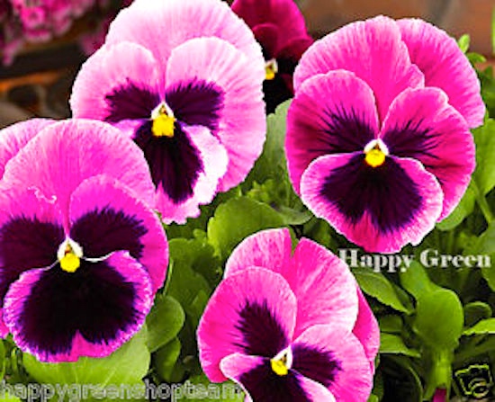 Pansies, the flowers, come in a wide variety of colors, including pink:
