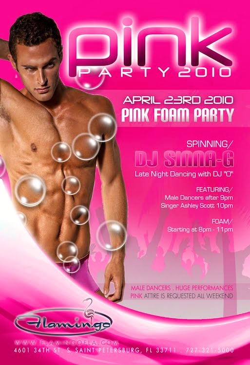 Most circuit parties have color names: the White Party in Palm Springs, the Blue Ball in Philadelphia, etc. Yes, there are Pink Parties; here’s a poster for one in 2010: