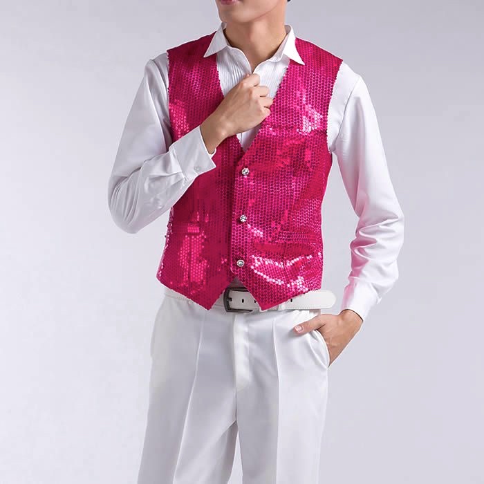 (#7) hot pink sequin tuxedo vest