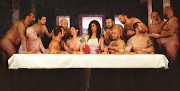 Meanwhile, in Salerno. From Pink News on 4/13/17, “LGBT group defends gay sex version of The Last Supper” by Josh Jackman: