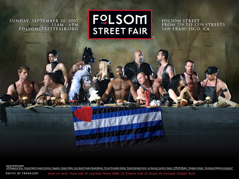 And before that, outrage over an ad for San Francisco’s Folsom Street Fair. From Adweek on 9/25/07, “A very gay ‘Last Supper’ in San Francisco” by Tim Nudd: