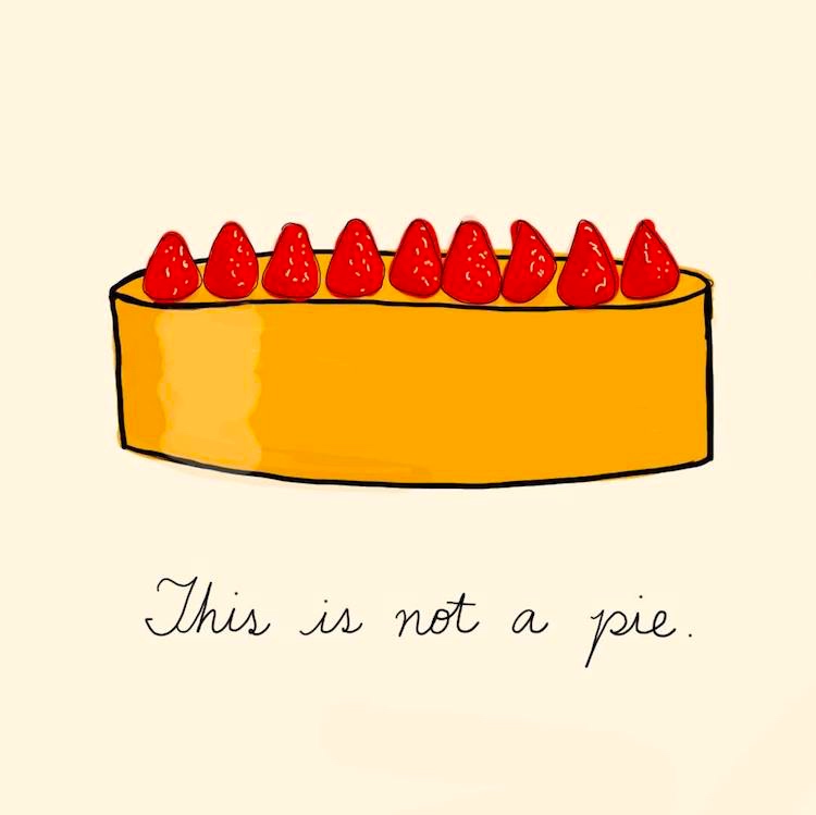 (#1) Steph’s objection framed as a Magrittean disavowal (it’s obviously a pie, but… — except that for Steph, it just isn’t a pie)
