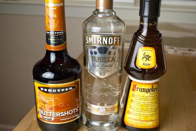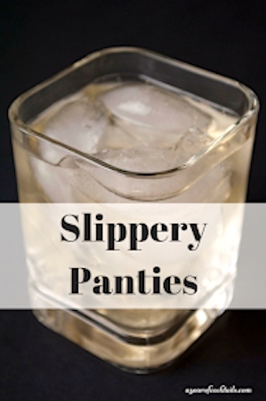 Slippery Panties: 1 shot vanilla vodka, 1 shot butterscotch schnapps, 1 shot hazelnut liqueur (Frangelico)