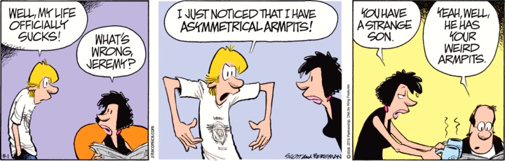 Today’s Zits, on bodily asymmetry: