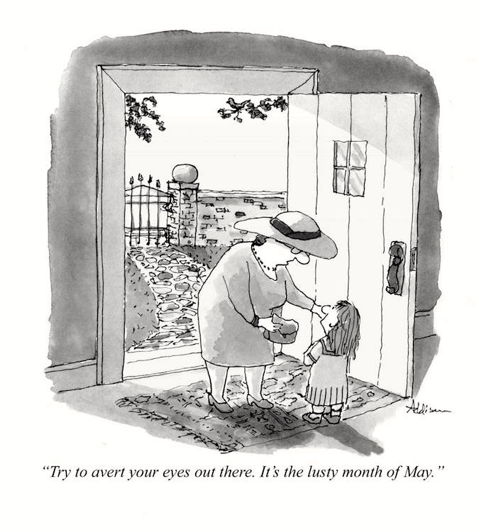 Also, it may perhaps be worth mentioning that the cartoon’s caption is a reference to the song, “The Lusty Month of May,” from the musical Camelot.