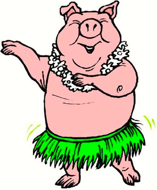 Then the hula-dancing pig. Suprisingly, there are rather a lot of such images, as here: