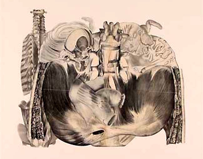 Then, something completely different, from the Anatomy Lessons section of the Cantor show: the often wildly eccentric Frederick Sommer, who (among many other things) did a series of collages made from volumes of anatomical illustrations. (Sommer was new to me.)