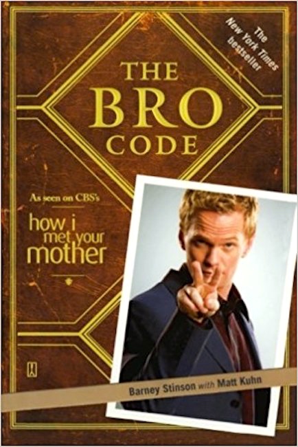 Inspired by the notion of Bro Code that they developed in their sitcom, How I Met Your Mother creators Carter Bays and Craig Thomas, and one of the show’s writers, Matt Kuhn, wrote a book called The Bro Code. Published by Simon & Schuster, the book covers 150 rules written in articles of what “bros” should or should not do … Greig Dymond of CBC.ca calls the book “a tongue-in-cheek guide to etiquette for horn-dog dudes.”