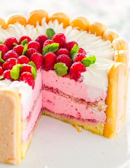 (#1) Raspberry charlotte cake, one of innumerable variants on the charlotte idea