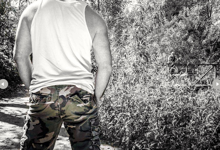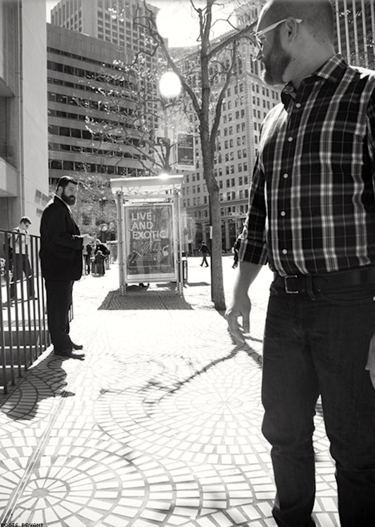 The facial expression for classic cruising-for-sex between strangers in public is impassive, betraying no emotion; what’s important is the exchange of gaze, held for much longer than would normally be polite in the circumstances. As here, in this bear-cruising photo by Boots Bryant (more on him below):