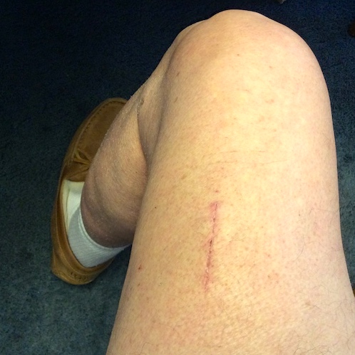 I had the muscle biopsy (left quadriceps) on Monday the 9th. On Monday the 16th the surgeon who did the biopsy removed the waterproof bandage from the site, looked at his work and was well pleased, and explained that the wound would heal soon, leaving only a small scar. I allowed that at this point in my life, a small scar was as nothing; I already had 7 visible scars on my body, the last one an impressive disfigurement, a cicatricial landscape over a foot long and over an inch wide at its maximum. So I should care about a small scar on my left thigh?