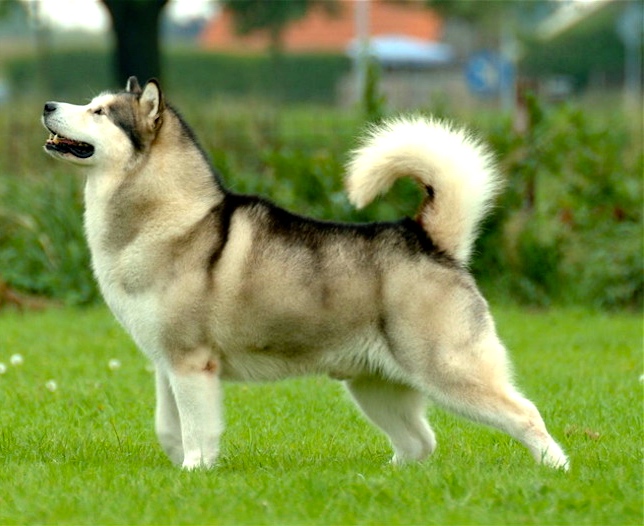 The Alaskan Malamute is a large breed of domestic dog … originally bred for hauling heavy freight due to their strength and endurance, and later as a sled dog. They are similar to other arctic breeds and spitz breeds, such as the Greenland Dog, Canadian Eskimo Dog, the Siberian Husky, and the Samoyed. (Wikipedia)