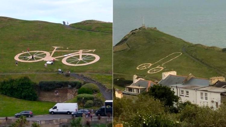 The news for penises: on a hillside in Devon. (Hat tip to Kim Darnell.) From the BBC news on 9/4/18, “Capstone Hill Tour of Britain bike turned into penis”:
