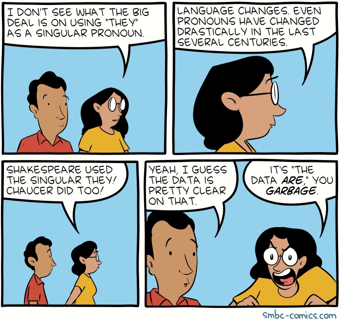 SMBC “They”. A recent Saturday Morning Breakfast Cereal cartoon, on a matter that’s become freshly topical: