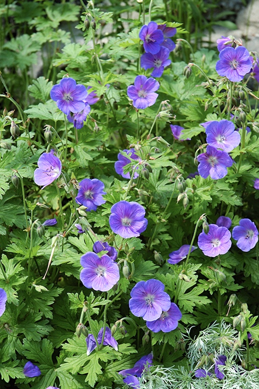 In a fancy planter outside a neighborhood business just up Ramona St. from my house: stunning blue cranesbills — the hybrid Geranium ‘Johnson’s Blue’, here in an image from the web: